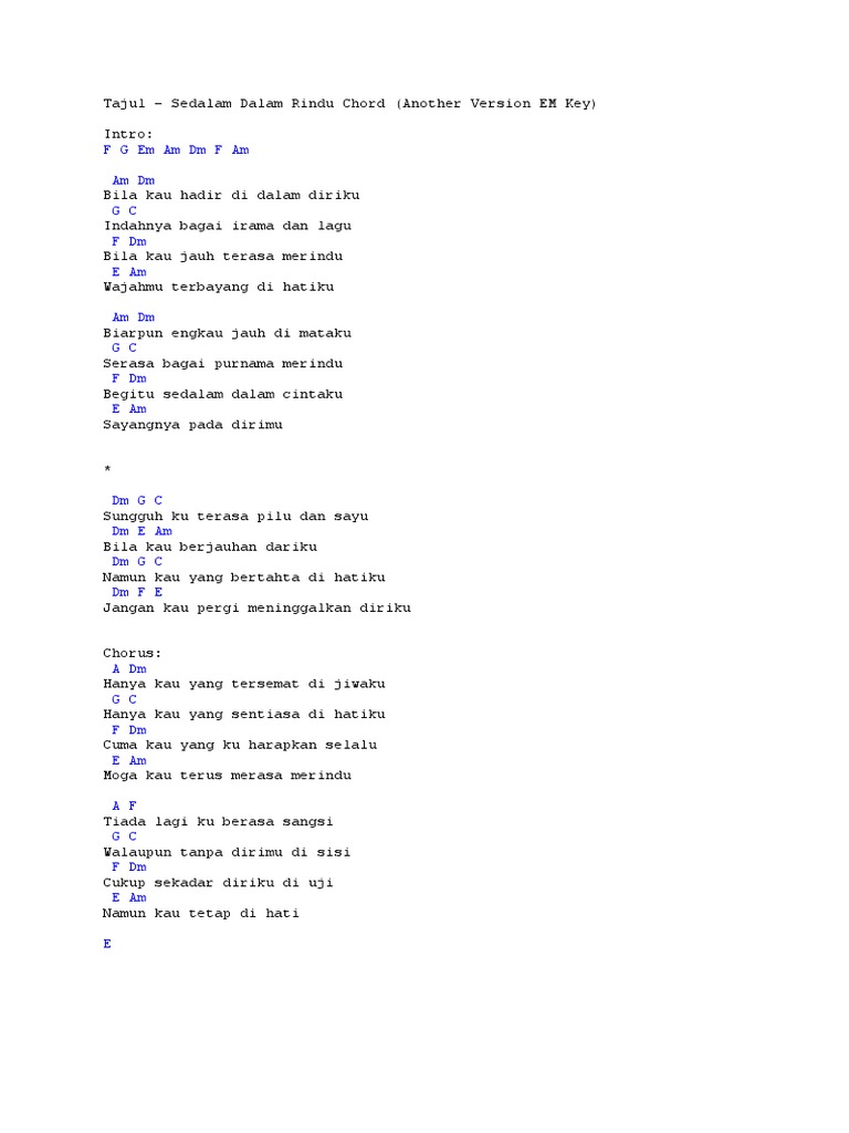 Tajul Sedalam Dalam Rindu Gitar Chord Pdf